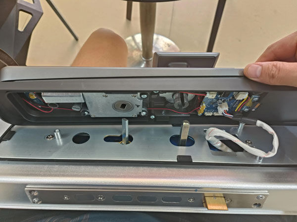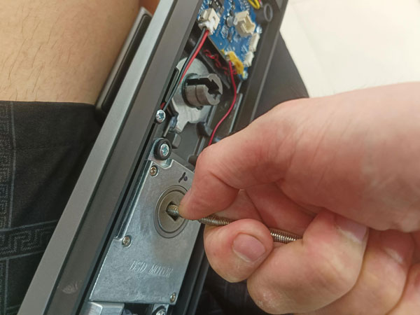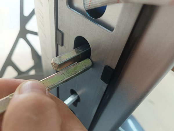 接下来就是取锁体,用梅花螺丝刀卸掉锁体侧面的四个固定螺丝,就可取出锁体。