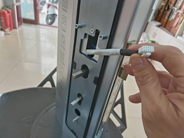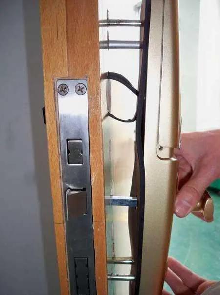 注意事项:这一步最主要是排线放入门内的时候,不要挤在锁体内,这些线会挡住锁体内部,从而会造成锁体伸缩不到位。